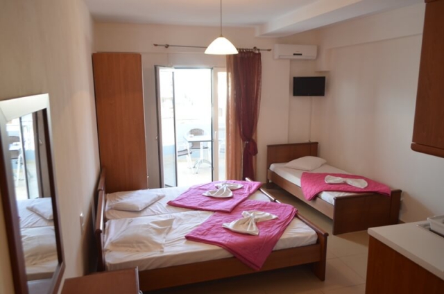 Vila Adonis se nalazi na 280 metara od plaže, 100 metara od parka i vile Mara, kao i 350 metara od crkve. Novoizgrađena vila, moderno opremljena. Sve smeštajne jedinice se nalaze na prvom spratu. U ponudi imamo dvokrevetne, trokrevetne, četvorokrevetne studije i četvorokrevetne apartmane, koji su opremljeni sa standardnim singl krevetima. U svim sobama ima kompletno opremljena kuhinja (frižider, mini električni šporet, posuđe), kupatilo, klima koja je uračunata u cenu, LED TV sa USB ulazom, WiFi (slabijeg protoka). Svi studiji gledaju ka ulici, osim apartmana koji gledaju ka dvorištu vile. U apartmanima ima dva klima uređaja i jedan TV. Svaki studio i apartman ima sopstvenu terasu sa garniturom za sedenje i svi se nalaze na prvom spratu vile. Kod apartmana iz obe sobe se izlazi na terasu, u jednoj sobi je francuski ležaj,a u drugoj se nalaze dva standardna singl kreveta. Deca do 6 godina starosti mogu deliti krevet sa dve punoplative osobe. Čišćenje apartmana i promena posteljine je na dan smene, dok peškira nema.