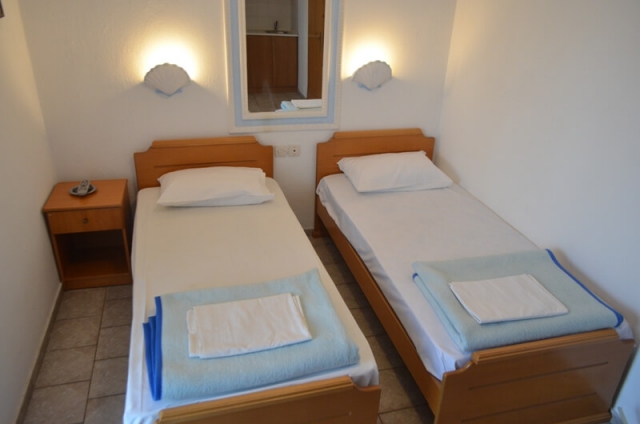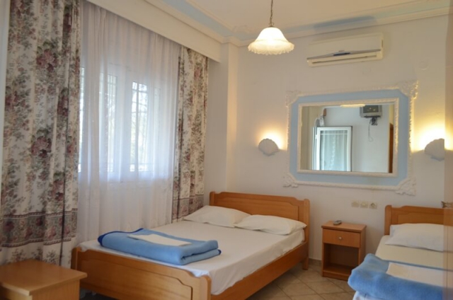Vila Mara se nalazi u centralnom delu Nei Porija, u neposrednoj blizini parka. Udaljena je 180 metara od plaže, a od crkve 200 metara. U prizemlju vile se nalazi ambulanta. Objekat raspolaže sa dvadeset dvokrevetnih, trokrevetnih i četvorokrevetnih studija, trokrevetnim i petokrevetnim apartmanima, kao i petokrevetnim i šestokrevetnim dupleksima. Sve smeštajne jedinice se nalaze na visokom prizemlju, prvom ili drugom spratu vile i sve sadrže francuski krevet ili sva singl ležaja i jedan standardni krevet. U dupleksima je u svakoj sobi po jedan francuski i jedan singl krevet. Opremljeni su kuhinjom (mini-električni šporet bez rerne, posuđe, veliki frižider), kupatilom, TV-om, klima uređajem koji se doplaćuje 4 eura po danu, dok je u dupleksima 6 eura po danu, WiFi (slabijeg protoka). Ugaone sobe imaju velike klima uređaje. Većina ima prostranu terasu sa garniturom za sedenje, dok se kod pojedinih studija garnitura nalazi unutar smeštajne jedinice. Na prvom spratu vile su tende. Čišćenje je na dan smene, dok je promena posteljine na 5 dana. Gosti sami uzimaju posteljinu i sami menjaju. U vili nije dozvoljeno smeštanje po sobama više osoba nego sto smeštajna jedinica ima kreveta. Krevet jedino mogu da dele sa punoplativim osobama deca do 2 godine.