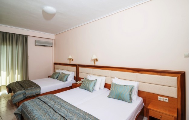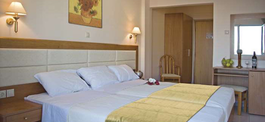 Hotel sa tridesetosam soba, renoviran 2007. godine, smešten je na dvadesetak metara od mora u centru letovališta, prekoputa crkve. Regina Mare ima recepciju, Internet "corner" (uz doplatu na licu mesta), wifi internet u javnim delovima hotela (besplatno), lobi, restoran, bar... Sve sobe su sa TWC sa fenom, SAT TV, telefonom, , malim frižiderom, A/C i terasom. Standardne sobe su namenjene za 2-4 osobe (2 standardna ili "francuski" ležaj i pomoćni ležaj). Usluga u hotelu je noćenje sa doručkom – “švedski sto” (samoposluživanje) uz mogućnost doplate za polupansion: večera - meni.