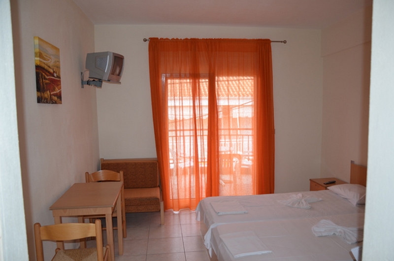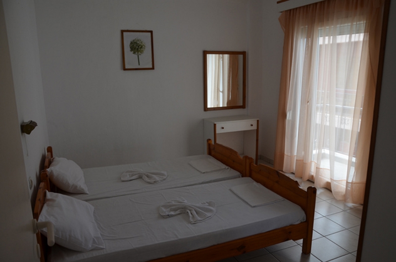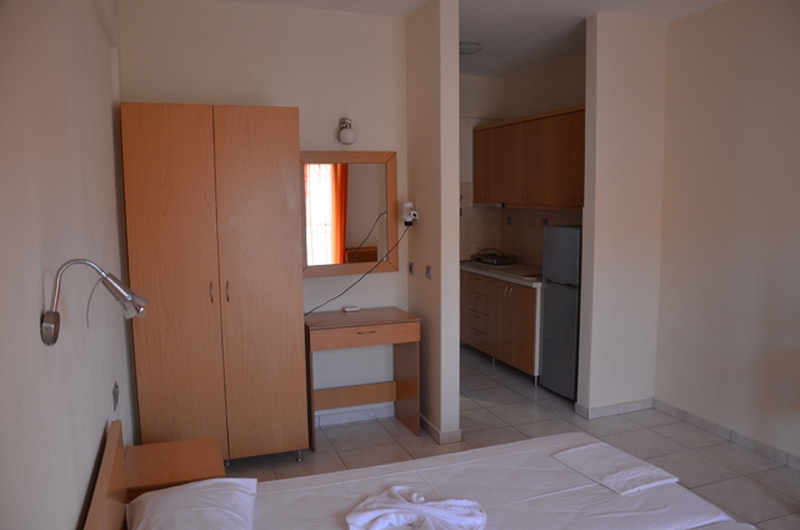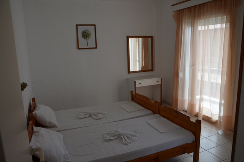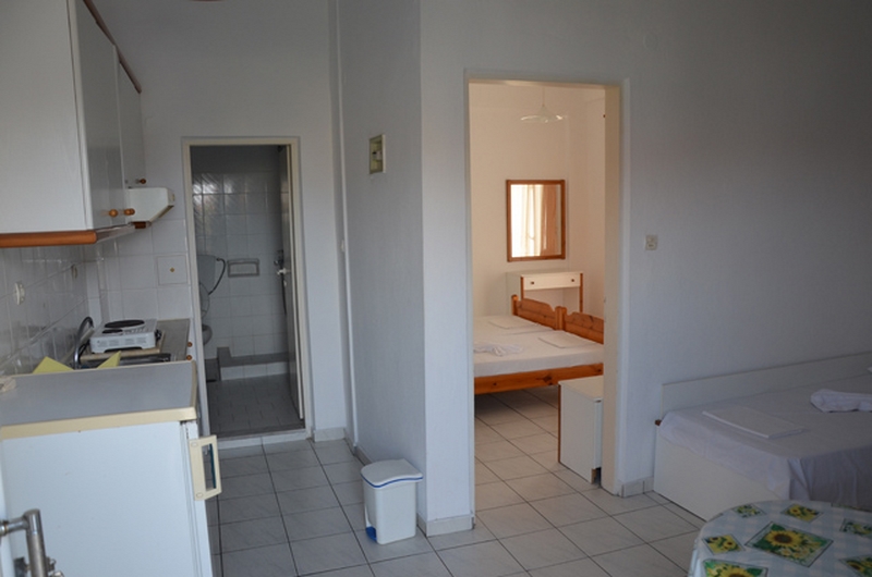 DVOKREVETNI STUDIO - Sastoji se od sobe sa dva spojena standardna ležaja, TV/KAT, ormanom za stvari, noćnim stočićem i klima uređajem (uključen u cenu), odvojenim delom bez vrata u kome se nalazi potpuno opremljena kuhinja sa rešoom i velikim frižiderom. Takođe, studio poseduje i kupatilo sa TUŠ/WC, kao i terasu sa stolom i stolicama sa pogledom na šetalište. DVOKREVETNI/TROKREVETNI APARTMAN- poseduje spavaću sobu sa dva standard singl ležaja, orman za stvari, noćni stočić, dok se u drugoj prostoriji nalazi potpuno opremljena kuhinja sa jednim ležajem dimenzija 190x80cm(KOD APP 1/3). Apartman poseduje TV/KAT, klima uređaj (uključen u cenu), kupatilo sa TUŠ/WC i terasu sa stolom i stolicama.
