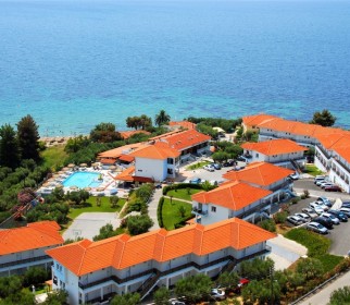 Veliki hotelski kompleks, sastoji se od glavne hotelske zgrade i nekoliko zgrada sa standardnim sobama i apartmanima. Sonia Village se nalazi izmedju poluostrva Kasandra i Sitonija, oko petnaest kilometara od Nea Moudanie (oko sedamdeset kilometara od Soluna), pored lepe, peščane plaže. Ima veliki i dečji bazen, bar pored bazena, prodavnicu, restoran sa prelepim pogledom na more, parking, sefove na recepciji (uz doplatu na licu mestu), Internet "corner" (uz doplatu na licu mesta), wifi internet u javnim delovima hotela (uz doplatu na licu mesta), veliki lobi, stoni tenis, bilijar (uz doplatu na licu mestu), terene za košarku i odbojku na pesku, dečje igralište... Suncobrani i ležaljke oko bazena su uključeni u cenu, a na plaži se doplaćuju oko 6 eur (set: 2 ležaljke i suncobran). Sve sobe su opremljene A/C, telefonom, SAT TV, terasom, krevecom (na upit, besplatno), malim frižiderom i TWC sa fenom.
