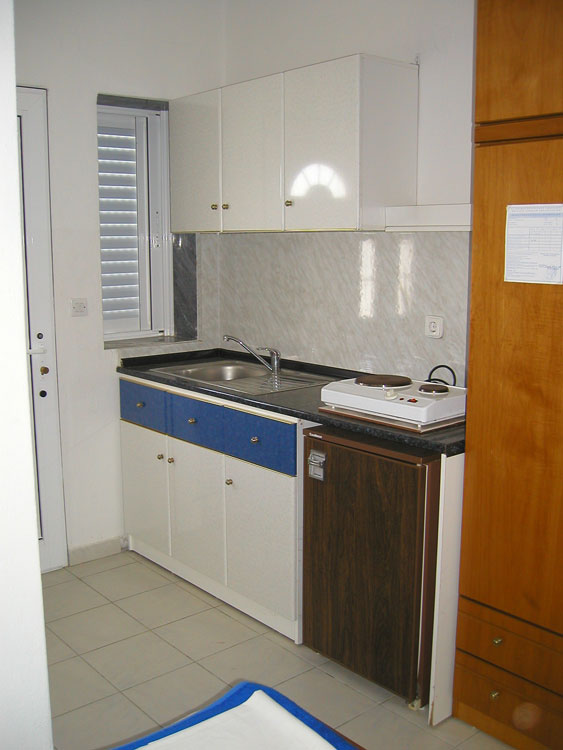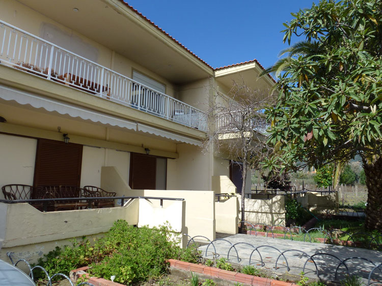 Nalazi se na oko 290m od mora. Desni blok kuće je Akis, a levi Mihalis, a oba čine kompleks sa bazenom na kome se nalaze i ležaljke, uređenim dvorištem sa roštiljem i parkingom. Studiji i apartmani su smešteni na prizemlju i prvom spratu. Svi imaju SAT TV, signal za bežični internet i klima uređaj čije se korišćenje doplaćuje. Terase imaju pogled na bazen ili na susedne vinograde i bašte.