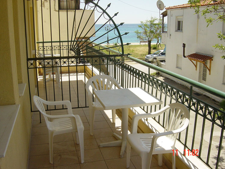 Smeštena je u neposrednoj blizini plaže. Svi studiji imaju SAT TV i klima uredjaje čije je korišćenje uključeno u cenu. Dva studija imaju terase sa pogledom na ulicu, a dva su sa bočnim pogledom na more. Zbog svoje pozicije i kvaliteta smeštaja ovo je jedna od najtraženijih kuća u našoj ponudi. Na 20m od kuće je peščani uredjeni deo plaže, a na oko 120m nalazi se jedini stenovito-peščani deo plaže u Sartiju, poznatiji po restoranu "Vrahakia" (gr.prev. vrahaki-stena).Smeštena je u neposrednoj blizini plaže. Svi studiji imaju SAT TV i klima uredjaje čije je korišćenje uključeno u cenu. Dva studija imaju terase sa pogledom na ulicu, a dva su sa bočnim pogledom na more. Zbog svoje pozicije i kvaliteta smeštaja ovo je jedna od najtraženijih kuća u našoj ponudi. Na 20m od kuće je peščani uredjeni deo plaže, a na oko 120m nalazi se jedini stenovito-peščani deo plaže u Sartiju, poznatiji po restoranu "Vrahakia" (gr.prev. vrahaki-stena).