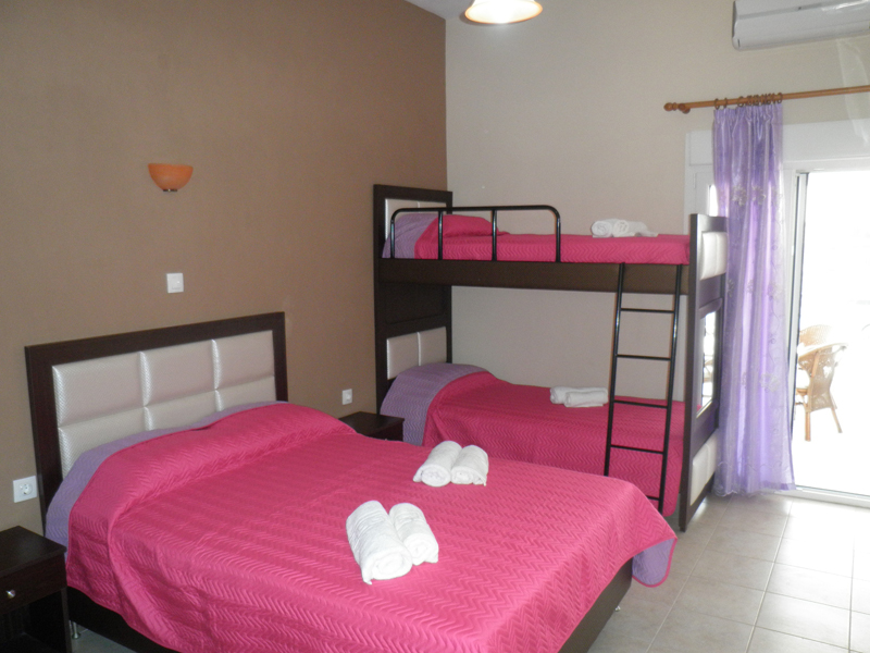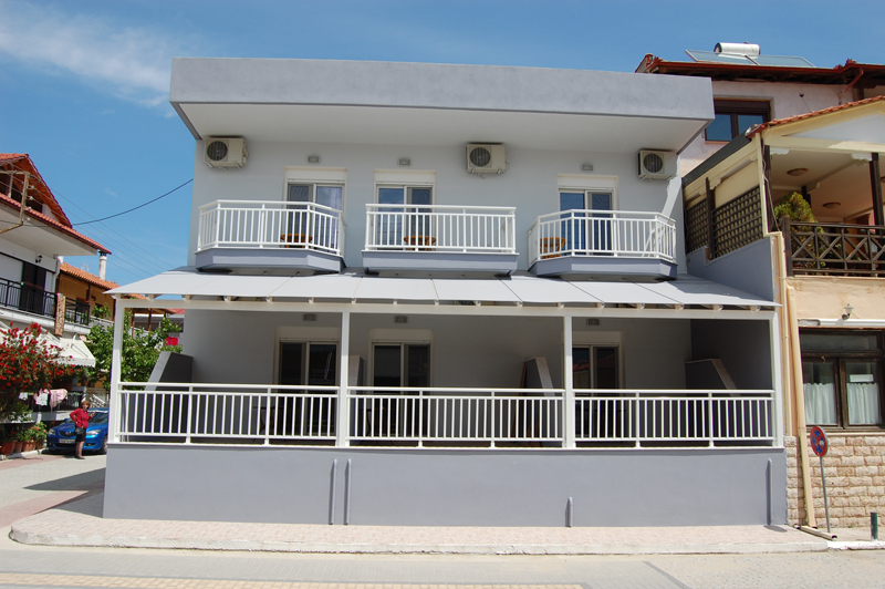 Potpuno nova kuća Filipos nalazi se u starom delu Sartija na oko 80m od organizovanog dela plaže. Studiji za 2 do 4 osobe se nalaze na visokom prizemlju i prvom spratu. Studiji za četiri osobe imaju krevete na sprat. Svi imaju satelitsku televiziju, signal za besplatno korišćenje bežičnog interneta kao i klima uređaj čije je korišćenje uključeno u cenu. U manjem dvorištu kuće nalazi se roštilj.