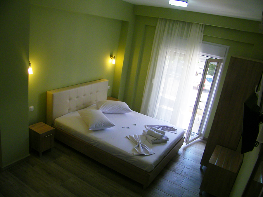 Potpuno nova kuća IORANA nalazi se u novom delu Sartiju na 40m od mora, u neposrednoj blizini kuća Tsantilas, Talizeti i Grigoris. Studiji i apartmani su potpuno novi, luksuzni, i nalaze se u niskom prizemlju, na prvom i drugom spratu. Studiji su za dve do tri osobe, a apartmani za četiri. Kuhinjski deo ima krevet na rasklapanje za dve osobe koji nije vratima odvojen od spavaće sobe u kojoj se nalazi široki francuski ležaj. Svi imaju SAT TV i klima uredjaj čije je korišćenje uključeno u cenu.