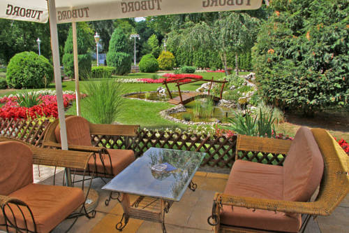 Hotel poseduje veliku terasu sa stolovima i stolicama, koja gleda na lepo uređeni vrt, na jezerce i na mali most. Igralište za decu sa ljuljaškama, kućicom i dvorišnim igračkama takođe je na raspolaganju.