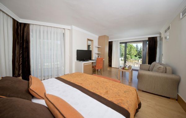 Doručak, kasni doručak, ručak, užina, gozleme, čaj I kafa, sladoled, večera ( sve prema satnici predvidjenoj konceptom), mini bar u sobama ( dve mineralne vode), peglanje odeće – 2 artikla po osobi tokom boravka, sportovi na vodi nemotorizovani, korišćenje teniskih terena u dnevnim terminima, sef u sobama, wi fi