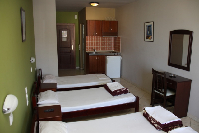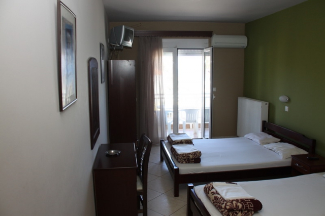 Vila Afroditi nalazi se na samoj plaži i jedna je od najpoznatijih vila u Leptokariji. Poseduje novoizgrađene dvokrevetne i trokrevetne studije, kao i standardne dvokrevetne, trokrevetne i četvorokrevetne studije sa standardnim ležajima, kao i studije sa dva standardna ležaja i kaučem na razvlačenje. Nalaze se u prizemlju i trećem spratu kuće. Većina studija ima bočni pogled na more. Jedanaest smeštajnih jedinica imaju kompletno opremljenu kuhinju (frižider, mini električni šporet, posuđe), klima uređaj čije se korišćenje doplaćuje 5 eura po danu, garderober, TV, kupatilo, prostrane terase. Gostima je na raspolaganju i novo otvoreni bazen za odrasle i decu sa ležaljkama i pool barom, (korišćenje bazena je besplatno uz kupovinu jednog pića), restoran, kafić, lift i WiFi (slabog protoka). Zamena posteljine vrši se svakog petog dana.