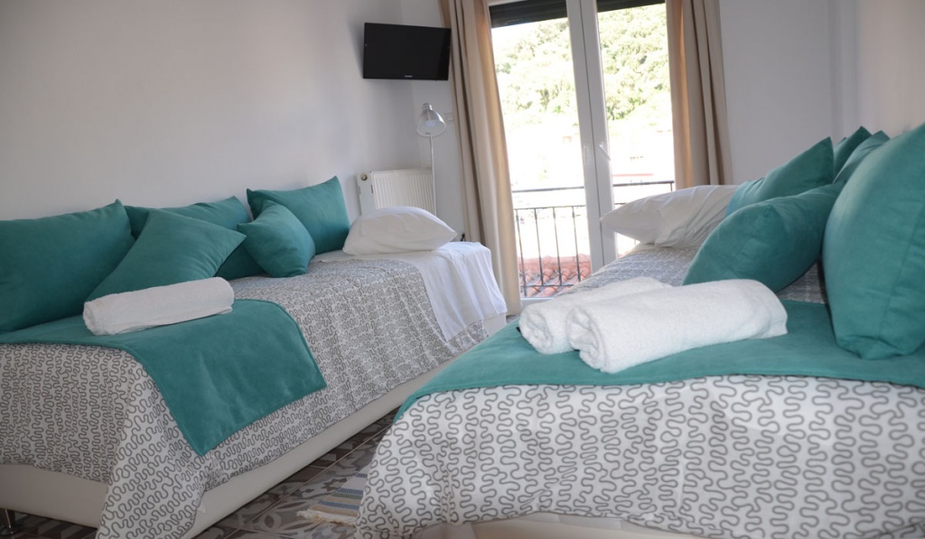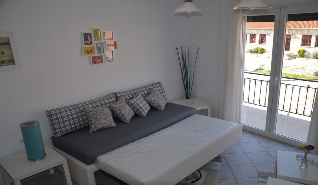 ŠESTOKREVETNI DUPLEKS – Nalazi se na 2-om spratu, opremljen je potpuno novim nameštajem i sastoji se od 2 spavaće sobe, od čega u jednoj spavaćoj sobi se nalaze 2 singl ležaja, a u drugoj francuski ležaj, dok se u dnevnom boravku nalazi ležaj na razvlačenje. Dupleks poseduje ormane, fen za sušenje kose, peglu i dasku za peglanje, TV, klima uređaj, terasu sa garniturom za sedenje i potpuno opremljenu kuhinju, koja sadrži: trpezarijski sto sa stolicama, frižider, šporet, mikrotalasnu, ketler, toster, posuđe i pribor. Kupatilo sadrži tuš kabinu/wc.