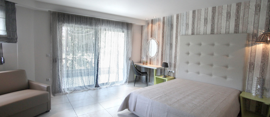 Struktura soba: Luxury room - 18-22m2, sa pogledom na brdo ili more, predviđeno za 2 osobe. Luxury room za 3 osobe - 22-25m2, sa pogledom na brdo ili more, predviđeno za 3 osobe (francuski krevet plus sofa). Family suite - 35 m2, namenjen za 2-4 osobe( odvojena spavaća soba sa francuskim ležajem i dnevni boravak sa dve sofe). Superior soba sa pogledom na more - 30 m2, namenjena za 2-4 osobe (francuski ležaj i sofa na razvlačenje).
