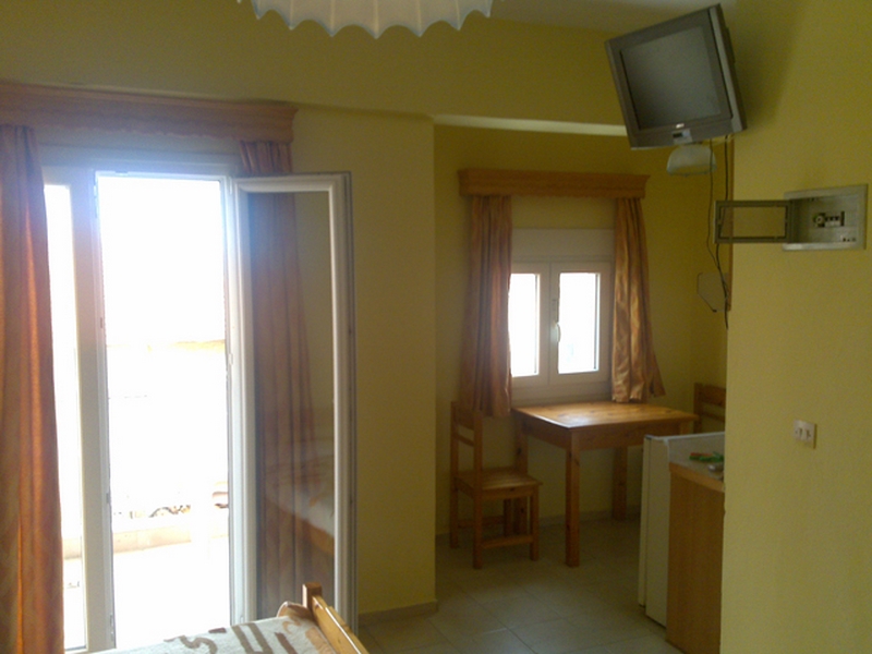 DVOKREVETNI/TROKRVETNI STUDIO:Sastoji se od sobe sa dva spojena ležaja (kod 1/2studija) i francuskim ležajem (190x145 cm) i jednim singl ležajem,(kod 1/3 studia) TV/KAT, ormarom za stvari, noćnim stočićem i klima uređajem, odvojenim delom bez vrata u kome se nalazi potpuno opremljena čajna kuhinja i trpezarija za ručavanje. Takođe, studio poseduje i kupatilo sa TUŠ/WC, kao i terasu sa stolom i stolicama. TROKRVETNI STUDIO + POMOĆNI LEŽAJ: Sastoji se od sobe sa francuskim ležajem i jednim singl ležajem, TV/KAT, ormanom za stvari, noćnim stočićem i klima uređajem, odvojenim delom bez vrata u kome se nalazi potpuno opremljena kuhinja i pomoćni krevet manjih dimenzija (175x70cm) drvene konstrukcije. Takođe, studio poseduje i kupatilo sa TUŠ/WC, kao i terasu sa stolom i stolicama. ČETVOROKREVETNI APARTMAN:Sastoji se od spavaće sobe sa dva singl standardna ležaja,dnevnim boravkom sa takođe dva singl standardna ležaja, TV/KAT, ormarom za stvari, noćnim stočićem i klima uređajem. Takođe u dnevnom boravku se nalazi odvojeni deo u kome se nalazi potpuno opremljena kuhinja i trpezarija za ručavanje. Takođe, poseduje i kupatilo sa TUŠ/WC, kao i ogromnu terasu sa pogledom na šetalište i jednim delom na more.