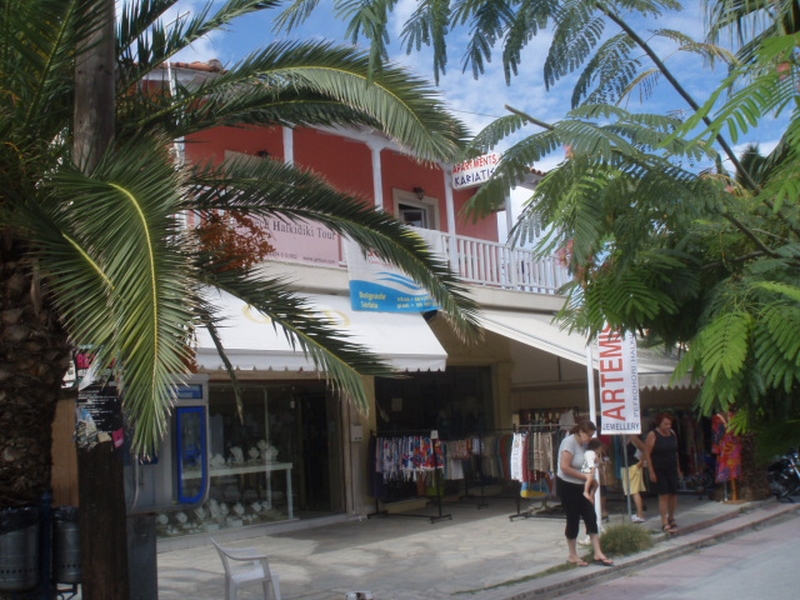 VILA KARIATIS- je izuzetno tražena na našem tržištu zbog svoje izuzetne pozicije i veoma lepih studija i apartmana koja ta kuća nudi, kao i zbog obezbeđenog PARKING prostora za sve naše putnike (na 80m od vile)..Vila "KARIATIS" se nalazi na samom šetalištu u strogom centru Pefkohorija, a udaljena je od plaže nepunih 30 metara. Izuzetna pozicija nudi Vam izuzetno letovanje kako za porodice tako i za pojedince. Objekat ne poseduje peškire.