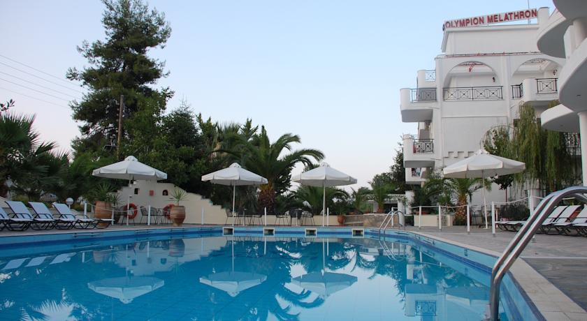 Hotel se nalazi izmedju Platamona i Nei Porija, na oko 200 metara od peščane plaže. Sadržaj hotela: recepcija, wifi internet u javnim delovima hotela (besplatno), restoran, otvoreni bazen, bar pored bazena, parking… Suncobrani i ležaljke oko bazena su uključeni u cenu. Sve sobe imaju TWC sa fenom, mali frižider, SAT TV, A/C i terasu. Standardne sobe su veličine cca 15 kvm, namenjene su za 2-3 osobe (2 standardna ležaja ili "francuski ležaj" i pomoćni ležaj). Porodične (family) sobe su namenjene za 2-4 osobe i sastoje se iz 2 prostorije koje nisu odvojene vratima (u jednoj se nalaze 2 standardna ležaja ili "francuski ležaj", a u drugoj sofa i kuhinja). i Usluga u hotelu je polupansion: doručak i večera - “švedski sto” (samoposluživanje).