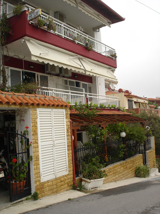 Nalazi se u starom mirnom delu Sartija, na samo 120m od mora, preko puta kuće Fotini i Renia.
