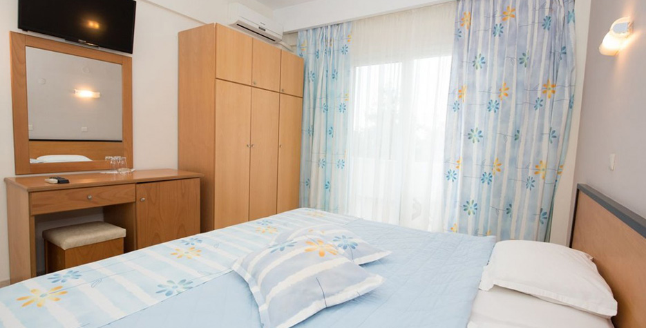 Hotel se nalazi između Egejskog plavog mora i divnih zelenih planina Tasosa. Savršen je za miran porodični odmor. Hotel sadrži: recepciju, lobi, “a la carte” restoran, bar na bazenu, bazen, dečiji bazen, igralište, fitnes, sauna, dnevni boravak sa TV-om, mini market-suvernirnica, igraonica, wi fi, usluge za osobe sa posebnim potrebama, parking, lift. Sve sobe su renovirane 2012 godine, potpuno opremljene. Sadrže A/C, telefon, SA TV, frižider, wi fi.
