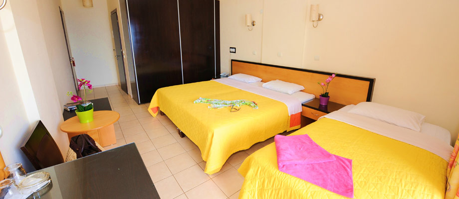 Struktura soba: Eco soba – oko 28m2. Smeštene su u prizemlju sa pogledom na baštu. Namenjene za 2-4 osobe (francuski ili dva odvojena kreveta i sofa). Standard soba sa krevetima na sprat pogled more – oko 32m2. Namenjene za 2-4 osobe. Francuski ili dva odvojena kreveta i krevet na sprat. Standardna soba pogled planina – oko 28m2. Smeštene na prvom ili na drugom spratu. Namenjene za 2-4 osobe (francuski ili dva odvojena kreveta i sofa). Standard soba pogled more – oko 28m2. Smeštene na prvom ili na drugom spratu. Namenjene za 2-4 osobe (francuski ili dva odvojena kreveta i sofa). Superior soba pogled more – oko 32m2. Namenjene za 2-4 osobe (francuski ili dva odvojena kreveta i sofa). Porodična suita – oko 60m2. Sastoje se od spavaće sobe sa francuskim krevetom i odvojenog dnevnog boravka sa velikom ugaonom garniturom i malom kuhinjom. Namenjene za 2-5 osoba (francuski krevet i sofe). Standardna soba sa krevetom na sprat pogled planina – oko 35m2. Idealne za porodice. Namenjene za 2-5 osoba (francuski ili dva odvojena kreveta i krevet na sprat). Superior suita – oko 35m2. Kompletno renovirane. Imaju spavaću sobu sa francuskim krevetom i odvojen dnevni boravak sa velikom sofom. Namenjene za 2-5 osoba.